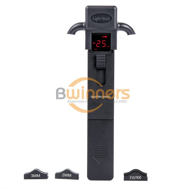 在维护、安装、布线和恢复过程中,往往需要在光纤一端注入调制音(270Hz, 1KHz, 2KHz)的1310nm或1550nm信号,不间断地找到并分离特定的光纤,并使用线路上的标识符进行识别,也可以指示信号的方向。四种类型的适配器头:0.25mm, 0.9mm裸光纤和2mm, 3mm跳纤。
