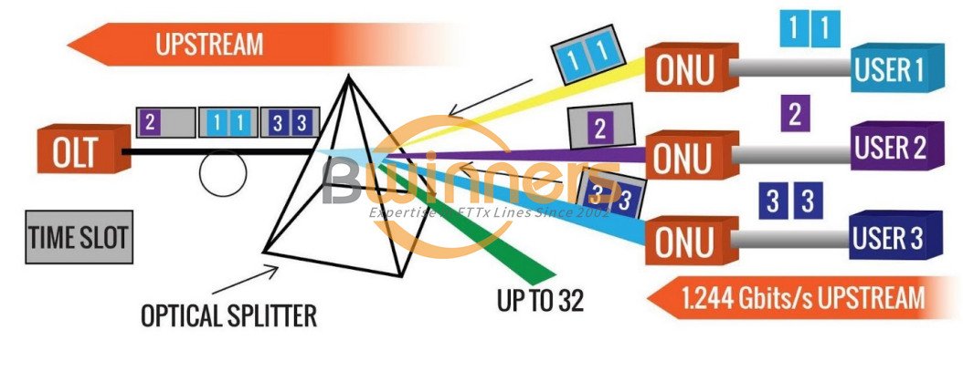 它应该总是由一个光纤分配器、一个光网络单元(ONU)和光线终端(OLT)组成。